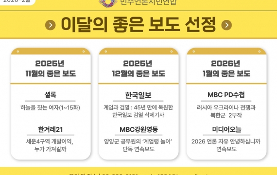 (사)민주언론시민연합 2026년 상반기 1차 공개 채용 공고 (미디어모니터링/교육사업 부문) (2026.02.10.~) ...