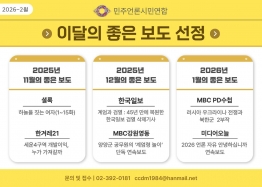 민언련 ‘2025년 11월·12월 및 2026년 1월 이달의 좋은 보도상’ 6건 선정