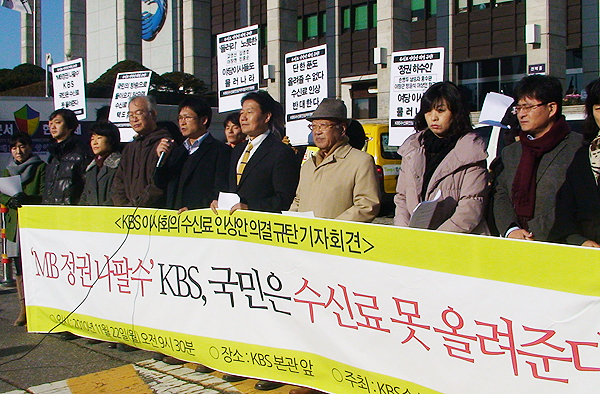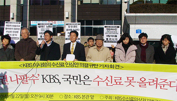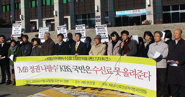 [KBS수신료인상저지 범국민행동]은 2010년 11월 22일 오전 9시 30분 KBS 본관 앞에서 <KBS 이사회 수신료 인상안 의결을 규탄하는 기자회견>