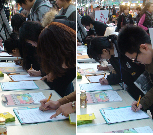 '조중동방송 저지 네트워크'는 3월 11일 홍대입구역 9번출구 앞에서 5시부터 8시까지 '조중동방송' 취소를 촉구하는 캠페인(서명)을 벌였습니다. 따뜻한 날씨에 많은 시민들이 서명에 동참했으며, 특히 판넬에 많은 관심을 보였습니다.