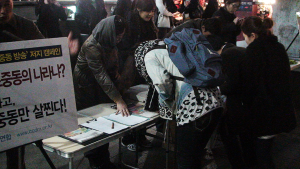 '조중동방송 저지 네트워크'는 3월 18일 홍대입구역 9번출구 앞에서 6시부터 9시까지 '조중동방송' 취소를 촉구하는 캠페인(서명)을 벌였습니다. 아울러 KBS 수신료 인상반대 서명운동도 함께 진행했습니다.