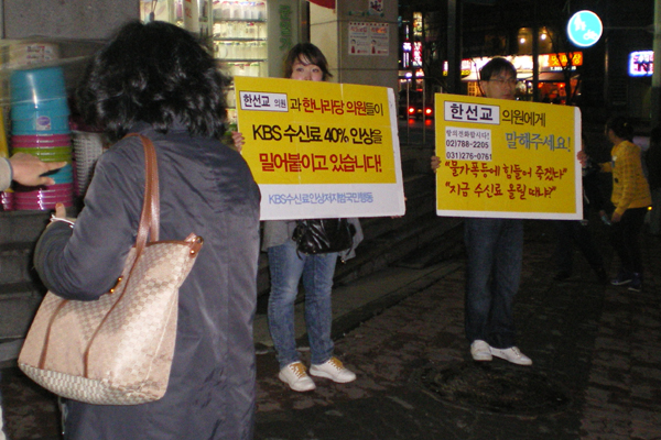 [캠페인]한나라당 문방위원 '한선교 의원' 지역구에서 ‘수신료 인상 반대’ 캠페인(2011.4.18)