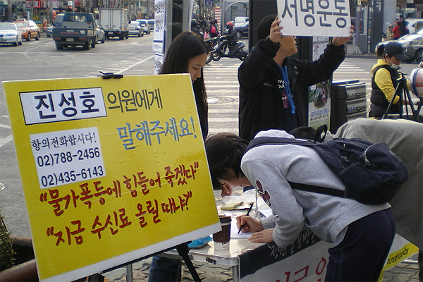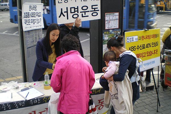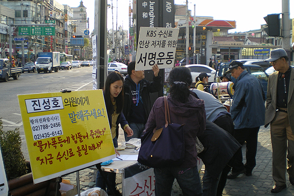 KBS수신료인상저지범국민행동은 4월 21일 한나라당 문방위원 '진성호 의원' 지역구인 중화역 2번출구에서 '수신료 인상 반대' 캠페인을 벌였습니다.
