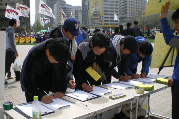 [캠페인]121주년 세계노동절 기념집회에서 조중동방송 저지 및 수신료인상반대 캠페인(20110501)