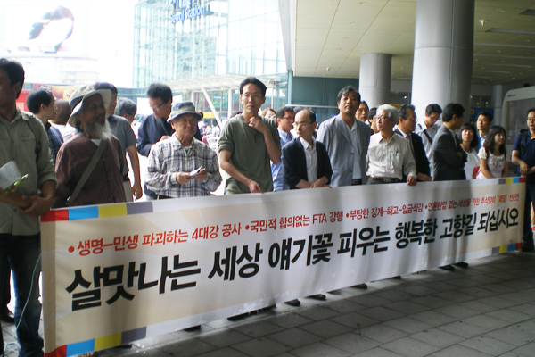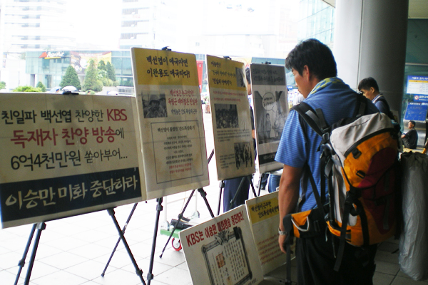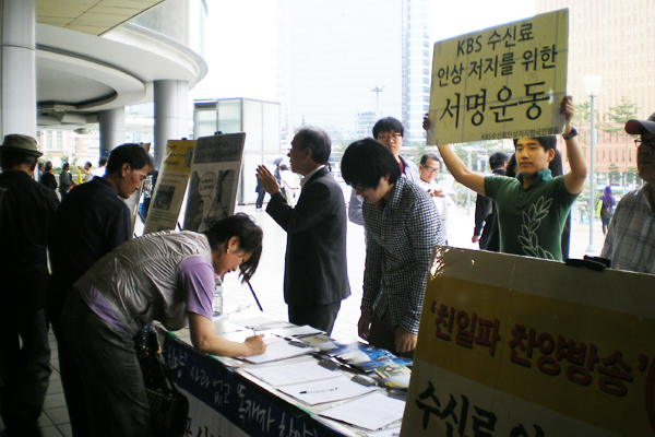 우리 단체는 9월 9일 오전 11시 기자회견 후, <추석 귀향 선전전>을 벌였습니다. 이날 선전전에서는 '희망버스, KBS도청의혹, 4대강사업저지, 한미FTA 등의 내용을 한 데 모은 [주간경향] 특별판을 시민들에게 배포하였습니다. 또 'KBS 수신료인상 반대 서명'과 'KBS 김인규사장 퇴진 서명'도 받았습니다.