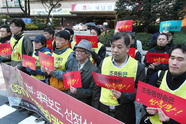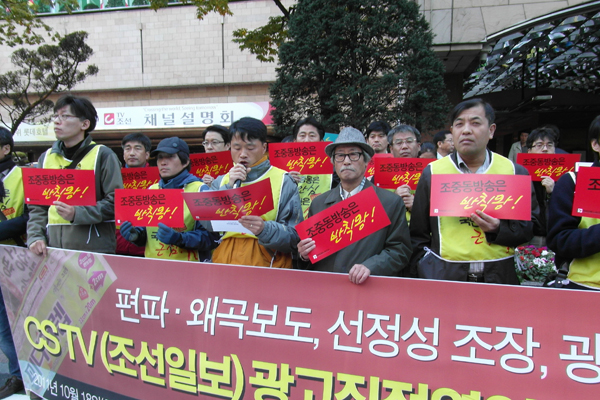 우리단체가 속한 조중동방송저지네트워크는 10월 18일 오전 11시, 조선일보종편채널설명회가 열리는 소곡동 롯데호텔 앞에서 "편파·왜곡보도, 선정성 조장, 광고주 압박 CSTV(조선일보)광고직접영업 중단 촉구하는 기자회견"을 열었습니다.