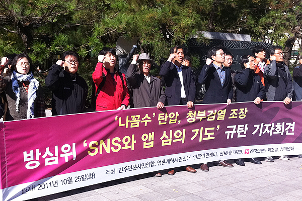 '나꼼수' 탄압, 청부검열 조장 - 방심의 'SNS와 앱 심의 기도' 규탄 기자회견