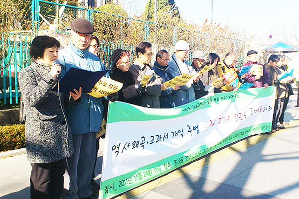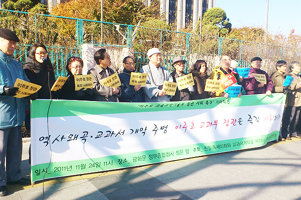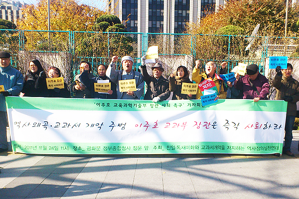 우리단체가 속한 <친일․독재미화와 교과서개악을 저지하는 역사정의실천연대>는 11월 24일 오전 11시 정부종합청사 앞에서 “이주호 장관은 즉각 사퇴하라”는 기자회견을 개최했습니다.