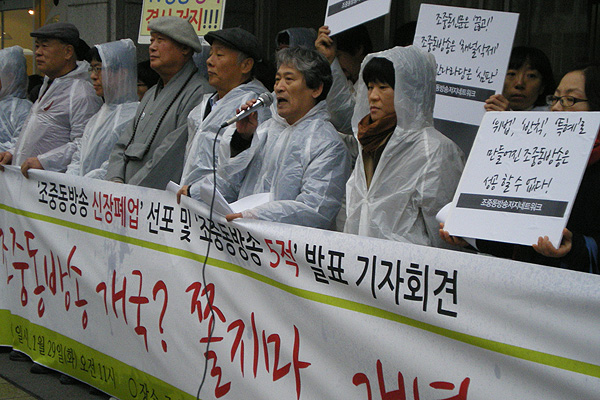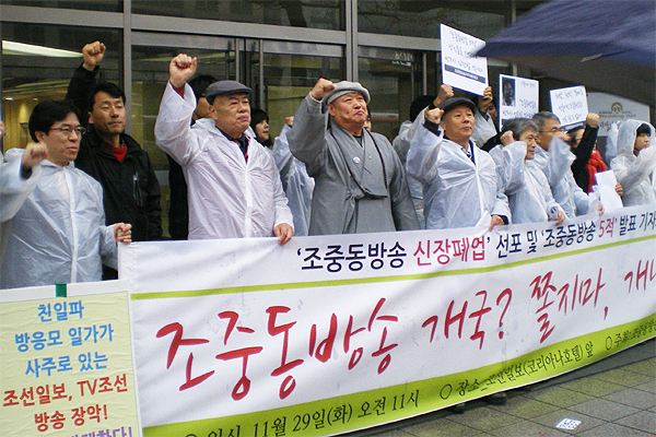 11월 29일 우리단체가 속한 <조중동방송저지네트워크>는 11시 조선일보사 앞에서 ‘조중동방송 신장폐업’ 선포 및 ‘조중동방송 5적’ 발표 기자회견을 열었습니다.