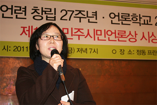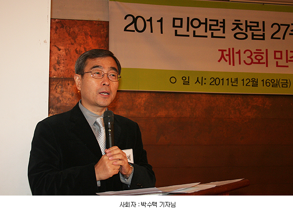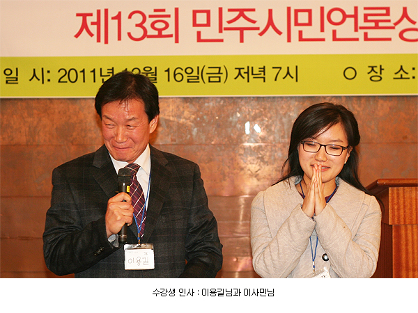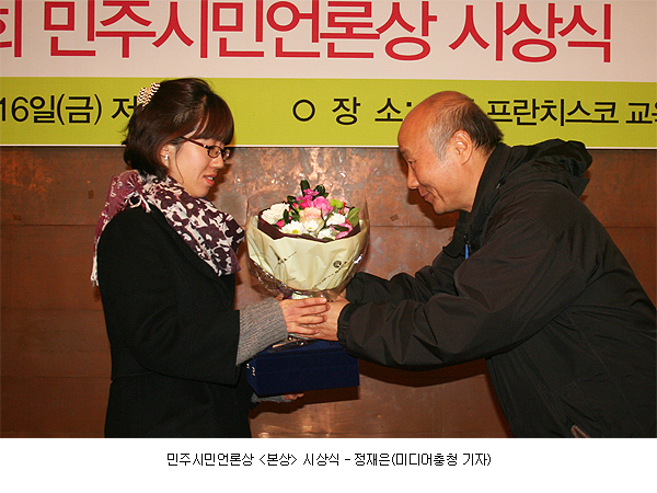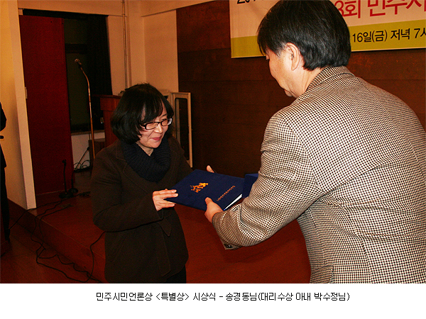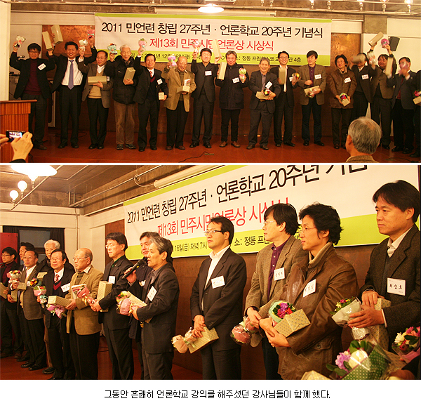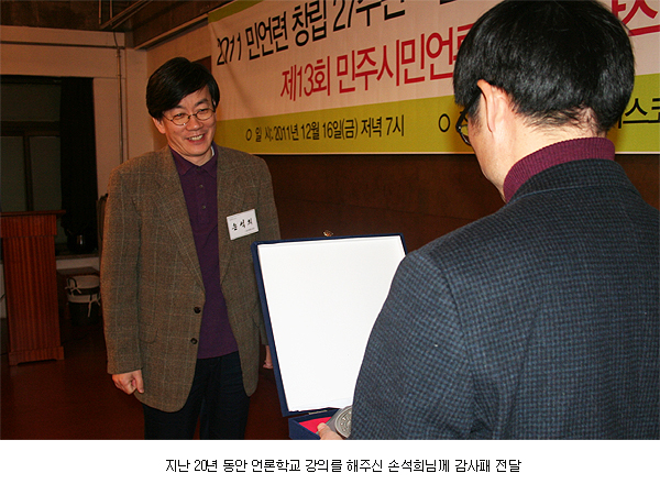 기념식이 끝나고 제13회 민주시민언론상 시상식을 진행했습니다.