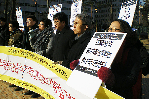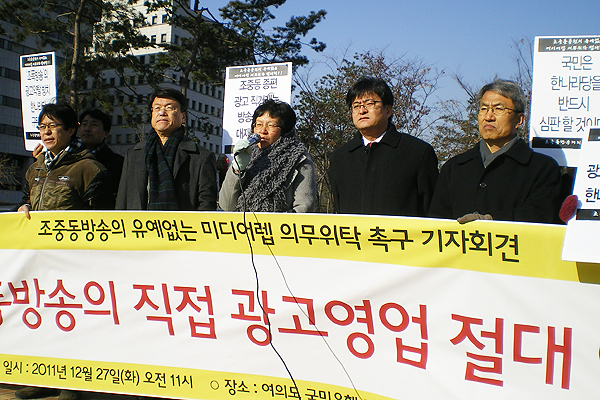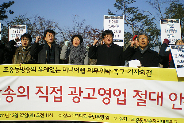 12월 27일 11시, 우리단체가 참여하고 있는 조중동방송저지네트워크가 여의도 국민은행앞에서 <조중동방송의 유예없는 미디어렙 의무위탁 촉구> 기자회견을 개최했습니다.