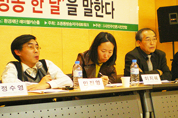 방정배 방송독립포럼 공동대표가 사회를 맡고, 최영묵 성공회대 교수와 이지혜 민언련 '조중동방송모니터팀' 팀장이 발제를 했습니다.