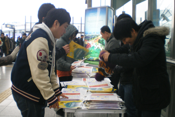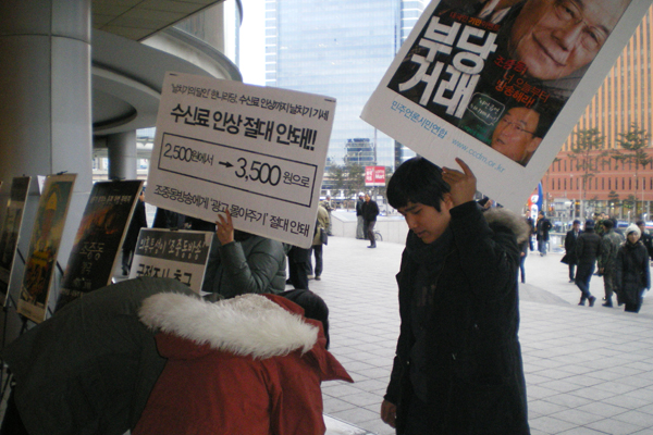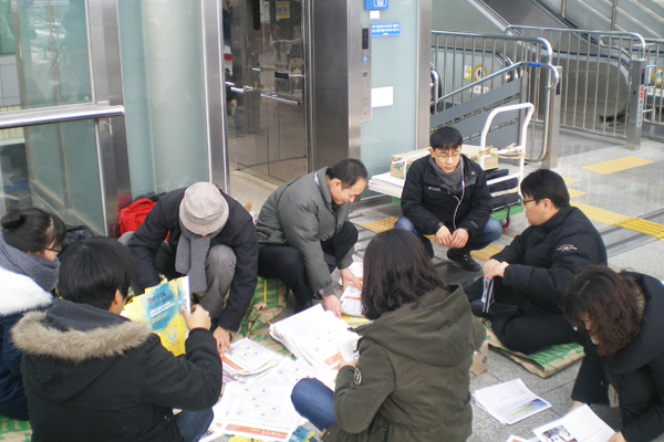 우리단체는 설 연휴 시작인 1월 20일 서울역에서 <설귀향 선전전>을 벌였습니다. 누더기 미디어렙법 재논의+수신료인상 반대+한미 FTA 폐기+KTX 민영화 반대+반값등록금에 대해 알리는 <시민과언론 특별판 14호>를 제작해 배포했습니다.