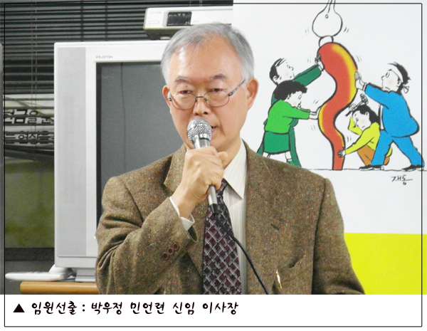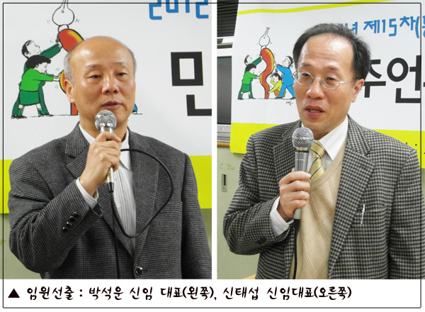 신임 이사장은 박우정 이사장, 신임 대표는 신태섭, 박석운 공동대표가 선출됐습니다.