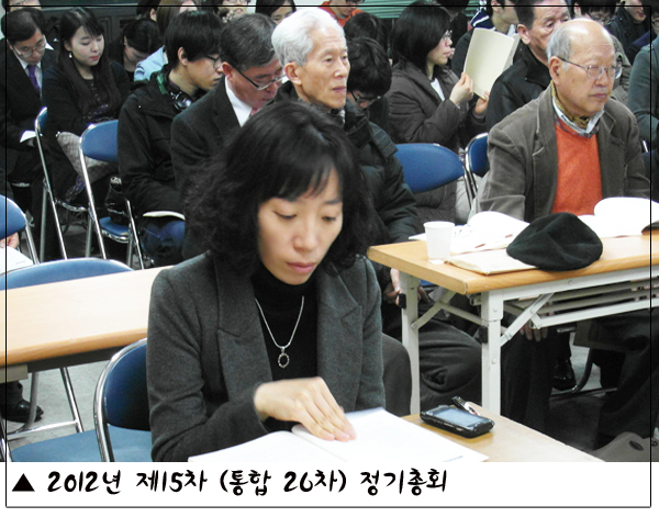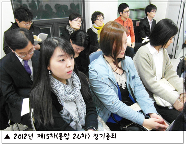 우리 단체는 3월 30일 민언련 교육관에서 제15차(통합26차) 정기총회를 열었습니다. 이날 정기총회에선 △ 임원선출 △ 정관개정 △ 2011년 사업 결산 보고 및 승인 △ 2012년 예상안 및 사업계획 승인 △ 민언련 10대 과제 발표 등이 진행됐습니다.