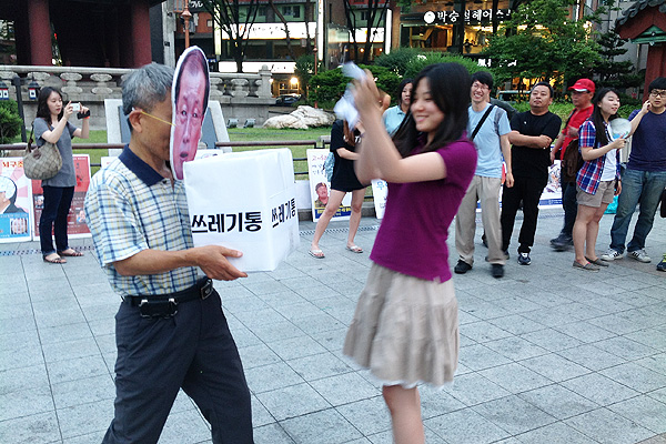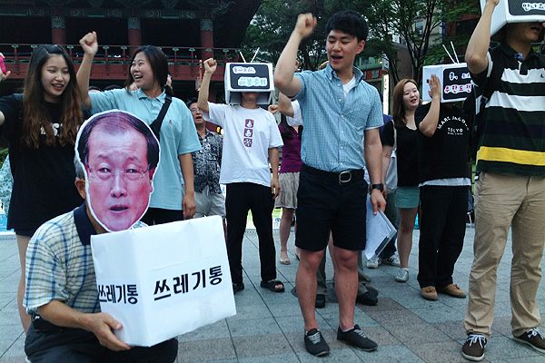 오늘(24일) 우리단체가 참여하고 있는 공정언론공동행동은 보신각앞에서 MBC 파업 해결 및 김재철 퇴출을 위해 시민무한도전-"쫌, 보자 무한도전X2"을 진행했습니다.