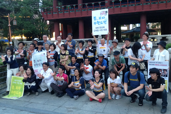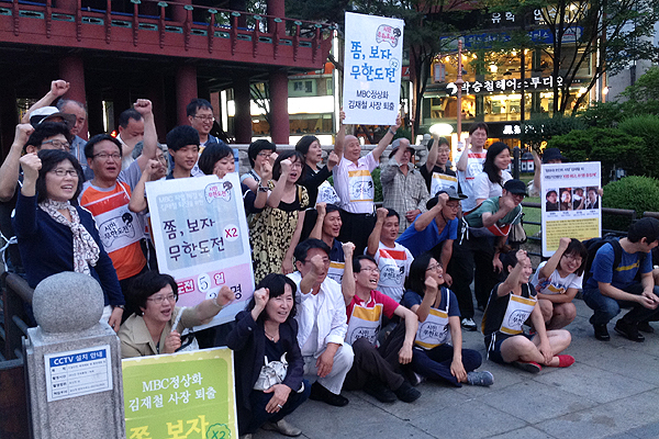 오늘(25일) 우리단체가 참여하고 있는 공정언론공동행동은 보신각앞에서 MBC 파업 해결 및 김재철 퇴출을 위해 시민무한도전-"쫌, 보자 무한도전X2"을 진행했습니다.