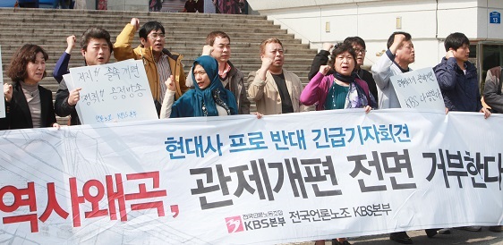 우리 단체는 4월 17일 오후 2시 KBS 본관 앞에서 전국언론노조, KBS노조, 민족문제연구소 등과 함께 <길환영 사장의 관제, 졸속 개편 반대 공동 기자회견>을 진행했습니다.