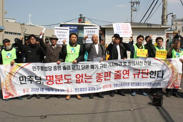 [기자회견] 민주통합당 종편 출연 금지 당론 폐기 규탄 기자회견 및 항의서신 전달(2013.4.18)