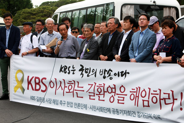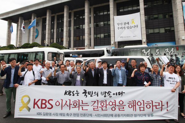 2014년 6월 5일 오전 11시 30분 KBS 길환영 사장 해임 촉구 현업 언론단체 ㆍ시민사회단체 공동기자회견 참가단체들은 KBS본관 앞에서 'KBS이사회는 길환영을 해임하라!' 는 기자회견을 개최했습니다.