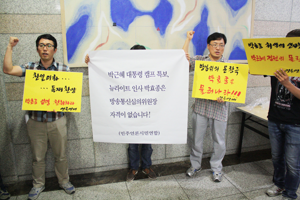 [기자회견] 친일 독재 찬양ㆍ대선 캠프 출신 방송통신심의위원장 반대 및 사퇴 촉구 기자회견(2014.6.17)