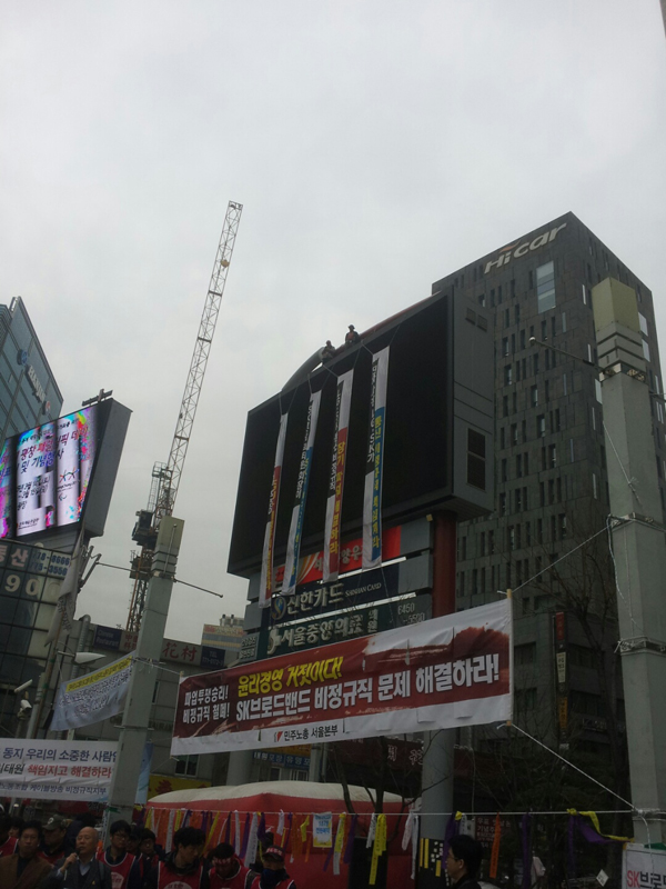 우리단체는 3월 17일 오후 11시 서울중앙우체국 고공농성장 앞에서 열린 'SK브로드밴드·LG유플러스 실태조사 촉구 언론시민단체 기자회견'에 참석했습니다.