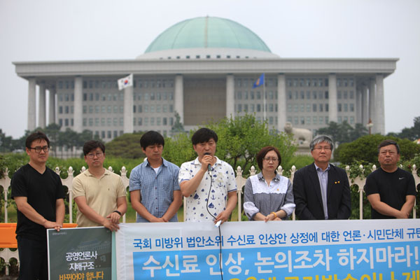 [기자회견]국회 미방위 법안소위 수신료 인상안 상정에 대한 언론․시민단체 규탄 기자회견(2015.6.25)
