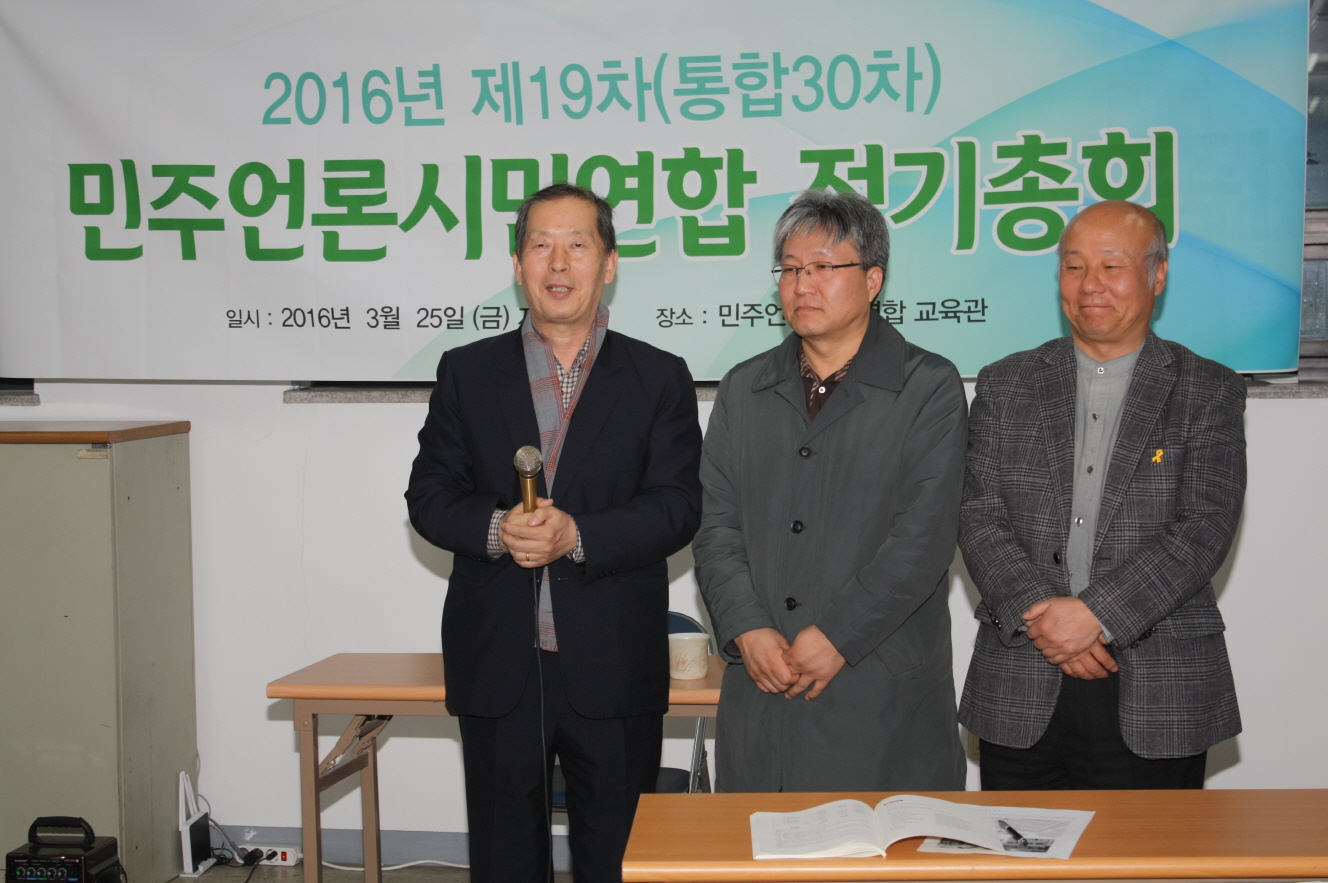 민언련은 3월 25일 저녁 7시 공덕동 교육관에서 ‘2015년 제19차(통합30차) 정기총회’를 개최했습니다. 이번 총회에서는 ▲2015년도 사업· 결산 보고 및 승인 ▲2016년도 사업계획안 · 2015년도 예산안 승인 안건을 원안대로 처리했습니다. 또 고승우 이사장과 이완기·박석운 공동대표를 재선출했습니다.
