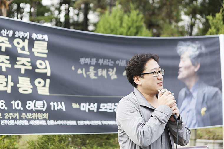 조영수 협동사무처장의 사회로 시작한 이날 추모행사에는 전규찬 언론연대 대표가 성유보 선생의 약력을 보고했습니다.