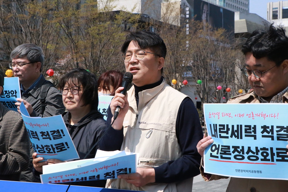 이제는 언론개혁이다! 내란세력 척결하고 언론정상화 투쟁에 나서자 기자회견(2025.04.08.)
