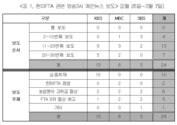 우리는 한미 FTA 8차 협상을 앞두고 지난 10일간 방송3사 메인뉴스의 한미 FTA 관련 보도를 분석해보았다.