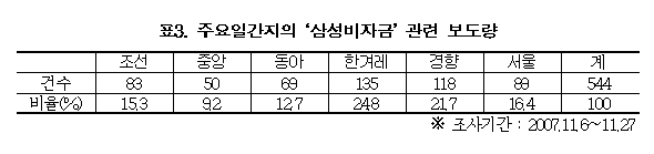 광고를 매개로 한 삼성의 신문통제 실태현황 분석보고서(2007.1.10)