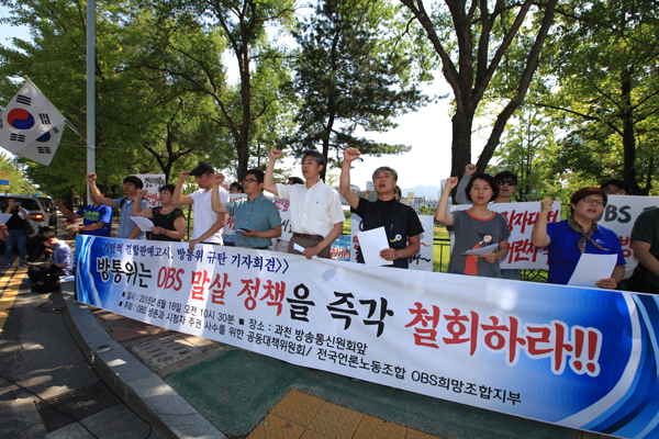 방통위는 즉각 2015 광고결합판매 고시를 철회하고, OBS의 생존을 위한 특단의 대책을 내놓아라! 그렇지 않으면, OBS 생존과 시청자주권 사수를 위한 공동대책위는 모든 수단과 방법을 동원해 대 방통위 투쟁에 들어갈 것임을 천명한다.