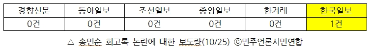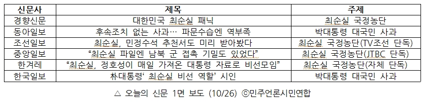 * 모니터 기간과 대상 : 2016년 10월 26일 경향신문, 동아일보, 조선일보, 중앙일보, 한겨레, 한국일보 (종이신문 지면에 한함)