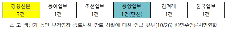 8. 오늘의 미보도 ① 고 백남기 농민 부검영장 당일, 중앙은 계속 단신 행보
