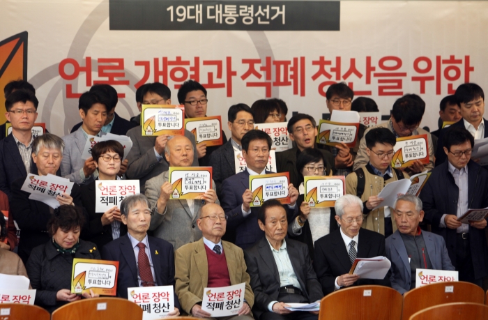 우리 단체는 이명박근혜 정권에서 벌어졌던 언론적폐 청산과 새 정부의 언론개혁 과제를 전국 각계 인사들의 의지를 모아 후보에 촉구하고, 시민들에게 알리고자 ‘언론개혁·적폐청산을 위한 원탁회의’를 개최하였습니다. ‘언론개혁·적폐청산을 위한 원탁회의’ ■ 일시: 2017년 4월 20일(목) 오전 11시 ■ 장소: 프란치스코교육회관 4층 ■ 주관: 민주언론시민연합, 전국언론노동조합 아래는 선...