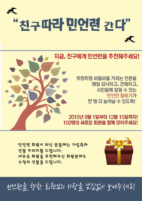 민언련 회원배가운동 "친구따라 민언련 간다"