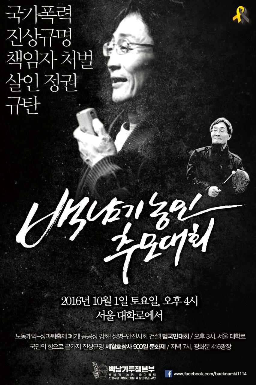 국가폭력에 쓰러진 고 백남기 농민을 추모하고,