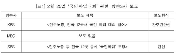 그러나 방송3사와 조중동은 국민파업대회를 외면했다.