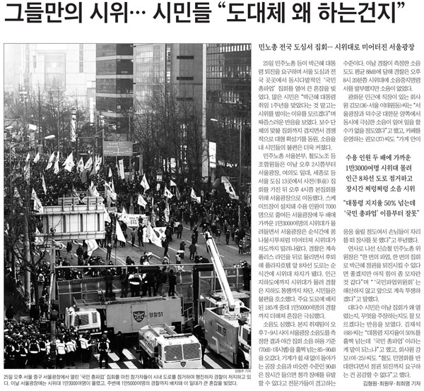 ■ 조중동, ‘국민파업대회’ 내용은 없고 오로지 ‘불법’, ‘시민불편’?!