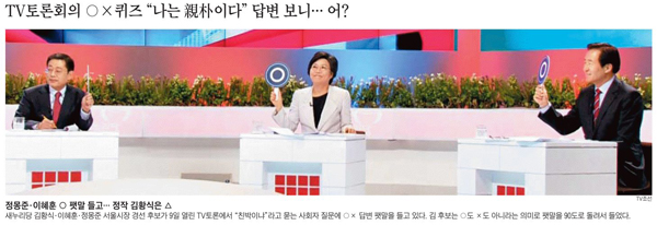 △ TV토론회인가? ‘朴心 테스트’인가? 조선일보 4월 10일자 6면