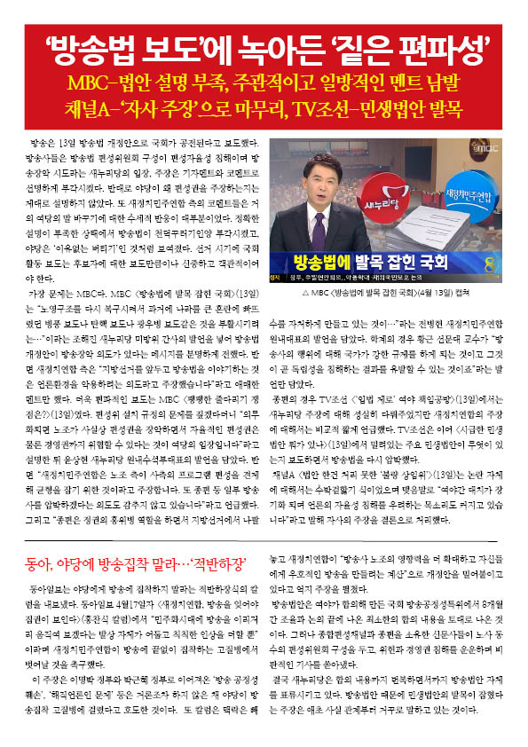 4) ‘방송법 개정안 논란’에 드리운 ‘짙은 편파성’