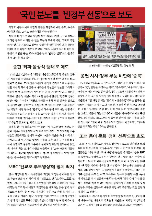 - [종편/방송 뉴스] ‘국민적 분노’를 ‘반정부 선동’으로 해석해