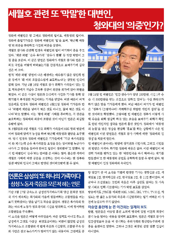 4) 세월호 관련 또 ‘막말’한 대변인, 청와대의 ‘의중’인가?