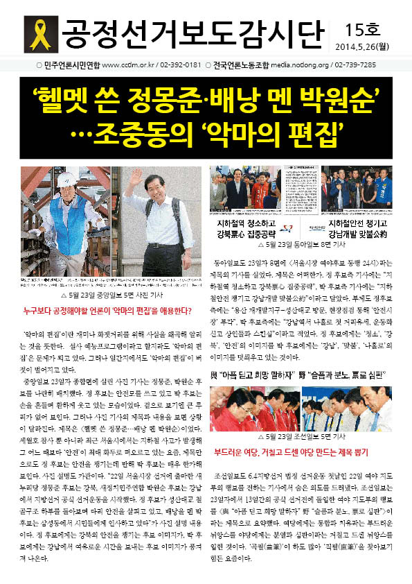 [15차보고서①] ‘헬멧 쓴 정몽준, 배낭 멘 박원순’…조중동의 ‘악마의 편집’(2014.5.26)