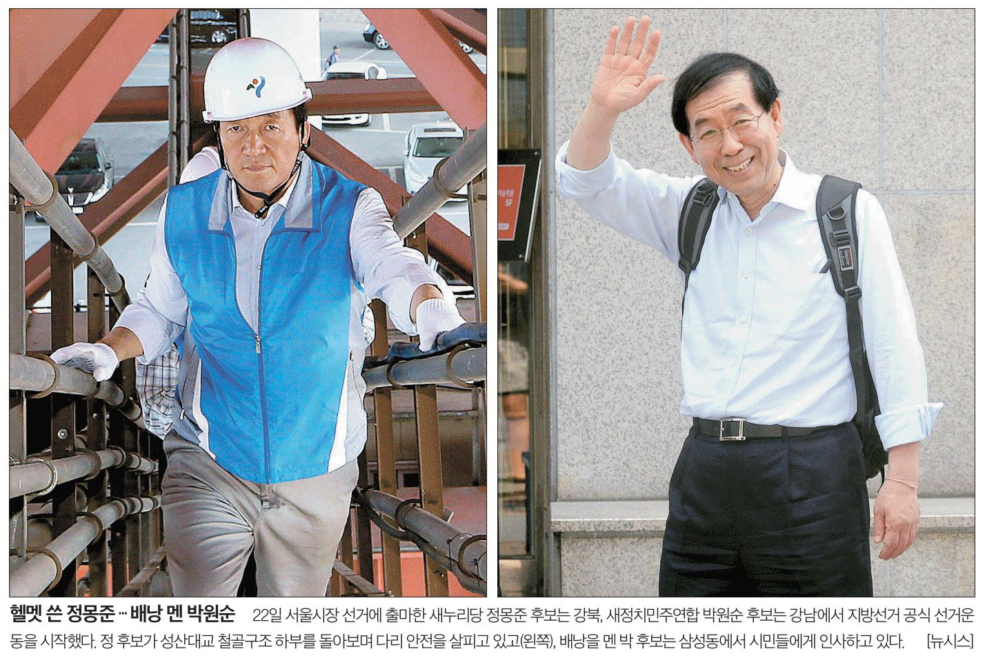 1) ‘헬멧 쓴 정몽준, 배낭 멘 박원순’…조중동의 ‘악마의 편집’
