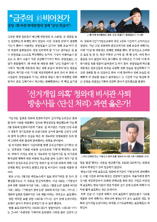 3) [방송] ‘선거개입 의혹’ 임종훈 靑비서관 사퇴, 단신 처리할 기사인가?
