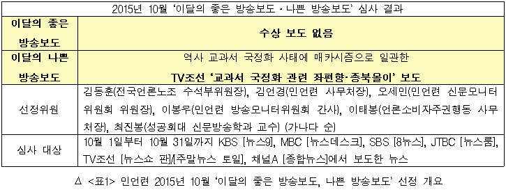 민언련 2015년 10월 ‘이달의 좋은·나쁜 방송보도’ 선정·발표(2015.11.19)