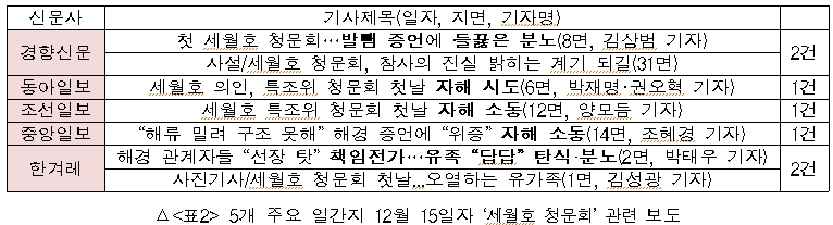 세월호 특조위 청문회 관련 신문‧방송 보도 모니터 보고서(2015.12.15)