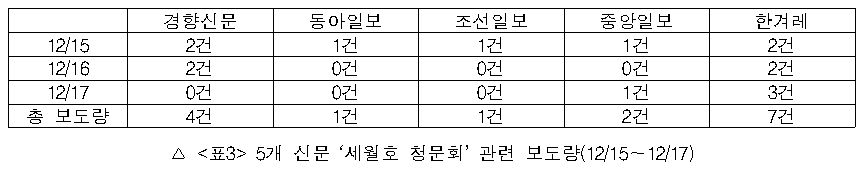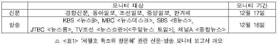 세월호 특조위 청문회 관련 신문‧방송 보도 3차 모니터 보고서(2015.12.17)